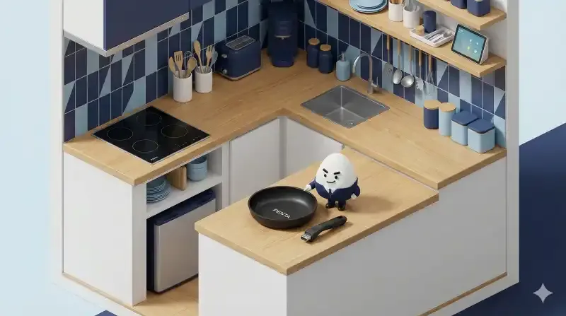 独身男性のワンルームマンション。その最大の敵は「狭いシンク」ではないでしょうか。 取っ手を外せるPENTAなら、シンクの中で場所を取りません。しかも硬度の高いサファイアコーティングが優秀なので、洗剤をつけたスポンジで優しくなでるだけで汚れが落ちます。後片付けが秒で終わる。この体験をしてしまうと、もう取っ手一体型のフライパンには戻れません。