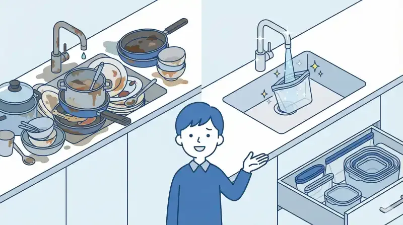 せっかく重い腰を上げて自炊をしても、ボウルで混ぜて、保存容器に移して、最後に皿に盛り付ける……。気づけばシンクは山積みの食器。これを見ただけで「明日からまたコンビニ飯でいいや」って気持ちになりませんか?僕は何度もありました。