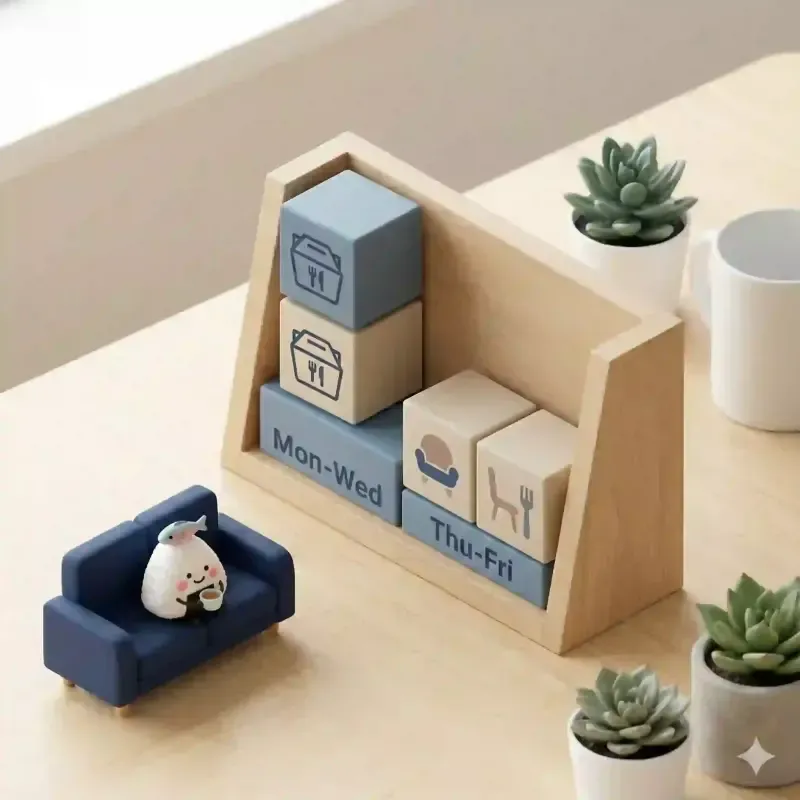 - 木・金: 冷凍弁当や外食で適度に手を抜く。