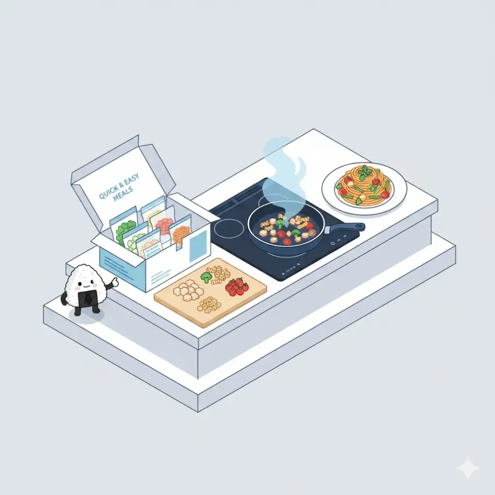 【キットの解決策】 ミールキットは、プロ(栄養士さんや料理研究家)が考えた 「正解の献立」 がそのまま届きます。 僕らはただ、送られてきたものを作るだけ。献立を考えるストレスから、完全に解放されます。